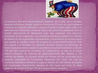 1. La deuda externa total de México asciende a 182 mil millones de dólares, lo que equivale al 17.43% del PIB mexicano.