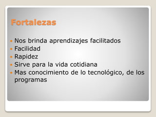 El documento resume una devolución de un alumno hacia su profesor de Tecnología de la Información y Comunicación (TIC). El alumno destaca las fortalezas de la enseñanza del profesor como brindar aprendizajes facilitados, rapidez y conocimientos útiles para la vida cotidiana. También menciona debilidades como recibir mucha información que a veces es difícil de aplicar. El alumno sugiere que el profesor haga devoluciones después de cada actividad y explique las actividades a través de videos.