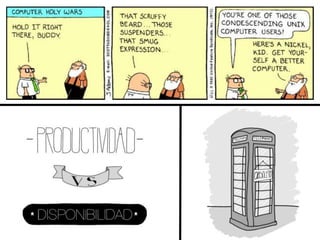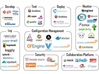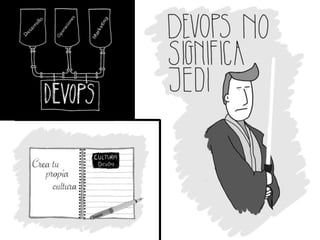 DevOps es una cultura que se centra en la comunicación y colaboración entre desarrolladores de software y operaciones de TI. El documento describe 3 vías para adoptar la cultura DevOps, 7 herramientas fundamentales como la gestión de configuraciones y despliegues automáticos, y 12 consejos para iniciar la implementación de DevOps.