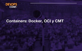 Este documento resume los conceptos clave de los contenedores, incluyendo Docker, Open Container Initiative (OCI) y Container Migration Tool (CMT). Explica que los contenedores usan namespaces, cgroups y chroot para aislar recursos, y que existen varios motores de contenedores como Docker, LXC y Rocket. También describe los estándares de OCI para formatos y ejecución portables de contenedores, así como las herramientas CMT y Docker para migración y administración de contenedores.