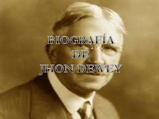John Dewey nació en 1859 en Estados Unidos y fue un importante filósofo y pedagogo. Creía que la escuela debía ser un espacio para que los estudiantes desarrollaran experiencias relevantes de la vida social a través de actividades grupales y la resolución de problemas. También pensaba que los maestros debían conectar los contenidos con los intereses de los estudiantes para estimular su aprendizaje.