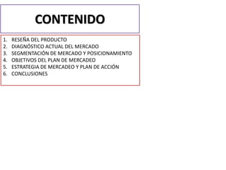 Este documento presenta un análisis de mercado y plan de mercadeo para un nuevo calzado deportivo llamado DF-Double Fit. Incluye una reseña del producto, un diagnóstico del mercado que identifica oportunidades y amenazas, un análisis de la competencia, la segmentación y posicionamiento del producto apuntando al mercado femenino de gama media y alta, y la estrategia de penetración de mercado y precios competitivos.