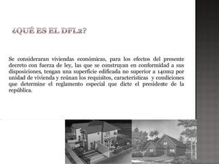 Este documento describe los beneficios tributarios de las viviendas económicas construidas bajo el decreto DFL2. Estas viviendas deben tener una superficie de hasta 140 metros cuadrados y cumplen con ciertos requisitos. Los beneficios incluyen exenciones en el impuesto a la renta por alquiler o venta de la vivienda después de un año de propiedad, y rebajas en el impuesto territorial por un período de 10 a 20 años dependiendo del tamaño de la vivienda. Adicionalmente, las ganancias por