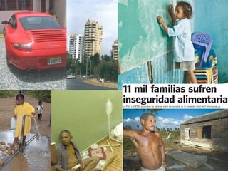 El documento explica el concepto de desarrollo humano según el paradigma del PNUD. Explica que el desarrollo humano se refiere al crecimiento de las capacidades de las personas, no solo al crecimiento económico. Señala que República Dominicana ha tenido alto crecimiento económico pero bajo desarrollo humano, y que es necesario que el Estado invierta en educación, salud y otros servicios para que el crecimiento se convierta en desarrollo de la gente.