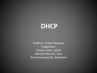 El protocolo DHCP permite a los clientes de una red IP obtener automáticamente sus parámetros de configuración de red como una dirección IP, máscara de subred, puerta de enlace y servidor DNS desde un servidor DHCP. El servidor DHCP asigna y administra las direcciones IP de forma dinámica o estática a los clientes cuando se conectan a la red.