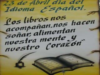 El documento habla sobre la celebración del Día del Idioma Español el 23 de abril. Explica que esta fecha conmemora la muerte de Miguel de Cervantes en 1616. También menciona que otros escritores importantes como Shakespeare y Nabokov nacieron el 23 de abril. Resalta la importancia de Cervantes y su obra El Quijote para el idioma español. Finalmente, brinda breves biografías de Cervantes, Shakespeare y el escritor y político colombiano Marco Fidel Suárez, quien también nació el 23 de