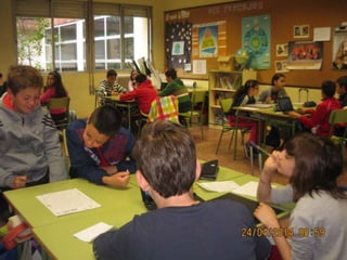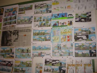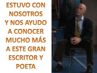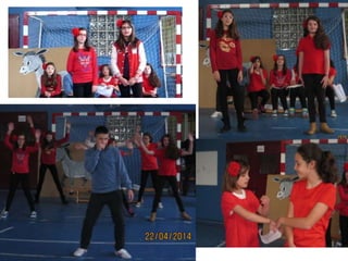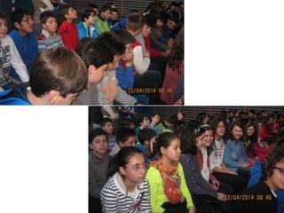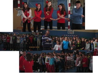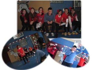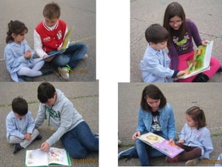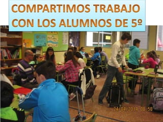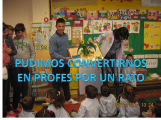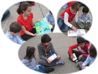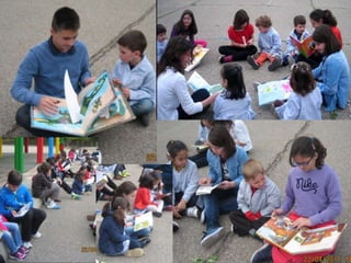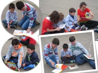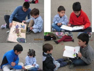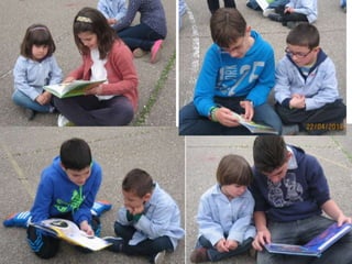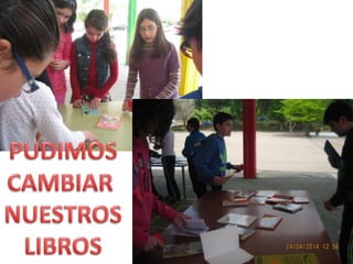 El documento describe las actividades realizadas para celebrar el Día del Libro en 2014, incluyendo conocer al autor Platero, compartir la lectura con niños, una gimkana difícil que requirió trabajo en grupo, y un mercadillo donde la gente se pegó a los libros.