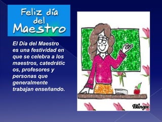 El Día del Maestro es una festividad que celebra a maestros, catedráticos y profesores que trabajan enseñando.