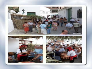 El documento describe la programación de las fiestas del Día de la Pasa que se celebran en El Borge, Málaga. Por la mañana habrá degustación de pasas, gazpacho y vino, demostraciones de la vendimia y elaboración tradicional de pasas. Por la tarde habrá actuaciones musicales como rocieros, verdiales y canción española, entrega de premios y distinciones a vecinos y una personalidad, y espectáculos de baile local y flamenco.
