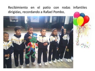Los niños celebraron el Día del Juguete en la sede Rafael Pombo con juegos dirigidos en el patio para recordar al escritor, juegos libres con sus juguetes favoritos que promovieron la convivencia y la ternura, y una presentación de cuentos de Pombo como El renacuajo paseador y Juan Matachín, acompañados de refrigerio y actividades de colorear.