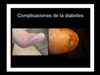 Este documento trata sobre la diabetes mellitus. Define la diabetes como un grupo de enfermedades metabólicas caracterizadas por hiperglucemia crónica debido a defectos en la secreción o acción de la insulina. Describe los diferentes tipos de diabetes, incluyendo diabetes tipo 1, tipo 2 y gestacional. Además, discute las causas del aumento de la prevalencia de diabetes a nivel mundial y las complicaciones asociadas con la enfermedad.