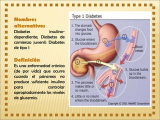 La diabetes tipo 1 es una enfermedad crónica que ocurre cuando el páncreas no produce suficiente insulina, lo que lleva a altos niveles de glucosa en sangre. Esta condición puede diagnosticarse a través de exámenes de glucemia y requiere un tratamiento que incluye insulina y modificaciones en la dieta y el ejercicio para manejar los niveles de glucosa. Aunque los síntomas pueden variar, el objetivo del tratamiento es prevenir complicaciones a largo plazo y mantener una calidad de vida adecuada.