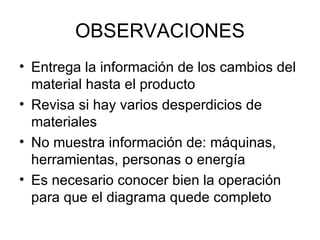 El documento describe el diagrama de flujo de bloques, el cual se usa para mostrar las operaciones de un proceso productivo mediante bloques o cajas unidas por flechas que indican los materiales que entran y salen de cada operación. El diagrama muestra los cambios de los materiales hasta obtener el producto final, pero no incluye información sobre máquinas, herramientas, personas o energía. Se incluye un ejemplo de diagrama para la fabricación de una silla.