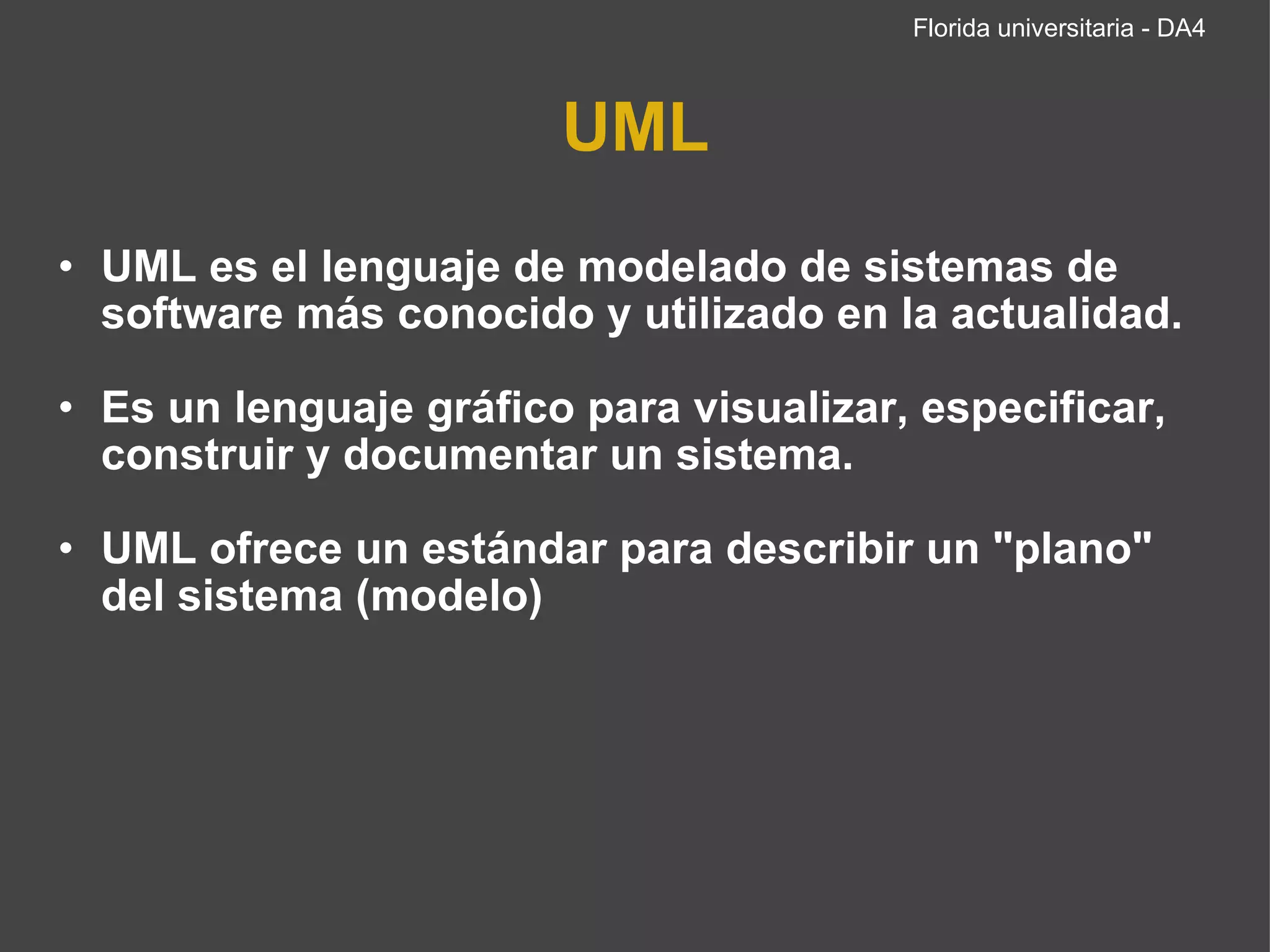 Este documento explica los conceptos básicos del Lenguaje Unificado de Modelado (UML), incluyendo los diferentes tipos de diagramas como diagramas de clases, estados, componentes y despliegue. Describe elementos como clases, relaciones, cardinalidad y cómo representarlos visualmente.