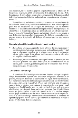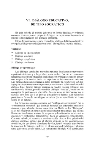 Este documento describe el método didáctico del diálogo educativo, también conocido como diálogo socrático. Se explica que este método involucra conversaciones detalladas entre dos personas con el objetivo de lograr un mejor autoconocimiento y comprensión del entorno. Se describen tres fases del proceso de diálogo y los roles del alumno y el facilitador. Finalmente, se mencionan algunos ámbitos en los que este método puede ser útil, como la terapia y la solución de problemas.
