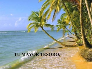 El documento habla sobre valorar lo que se tiene en lugar de desear lo que no. Un hombre caminando por la playa arrojaba piedras al mar mientras deseaba cosas que creía lo harían feliz, hasta que se dio cuenta que la última piedra era un valioso diamante. Del mismo modo, muchas personas pasan la vida deseando lo que no tienen en lugar de apreciar sus tesoros cercanos. Cada día es un diamante valioso que hay que aprovechar.