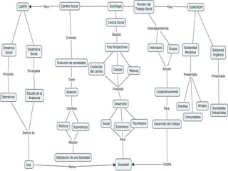 Este documento presenta un mapa conceptual sobre la división social del trabajo de acuerdo a Émile Durkheim. Fue creado por Diana Suárez para la profesora Yamilet Lucena como parte de un curso de Sociología en la Universidad Fermín Toro. Incluye referencias bibliográficas de material de la plataforma SAIA y de los sitios web de Wikipedia y Google sobre la teoría de la división social del trabajo de Durkheim.