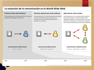 El documento describe los beneficios y consecuencias de la web semántica y el futuro de Internet. La web semántica dotará a la web de mayor significado para que los usuarios puedan encontrar información más rápido. Esto traerá beneficios como menor asimetría de información y mayor crecimiento económico, pero también consecuencias como que las personas ignoren a quienes no comparten sus intereses.