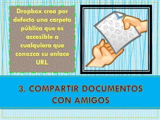 El documento explica que los usuarios de Dropbox pueden crear su propia página o sitio personal y alojarlo en su cuenta de Dropbox.