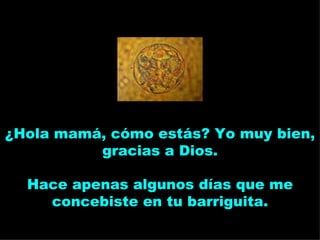 La carta es escrita por un feto a su madre describiendo su desarrollo en el útero durante los primeros meses y expresando su felicidad y amor por su madre. Sin embargo, expresa su confusión y miedo cuando nota que su madre está deprimida y llorando, y más tarde es sometido a un aborto donde siente dolor y pide a su madre que lo ayude y defienda.