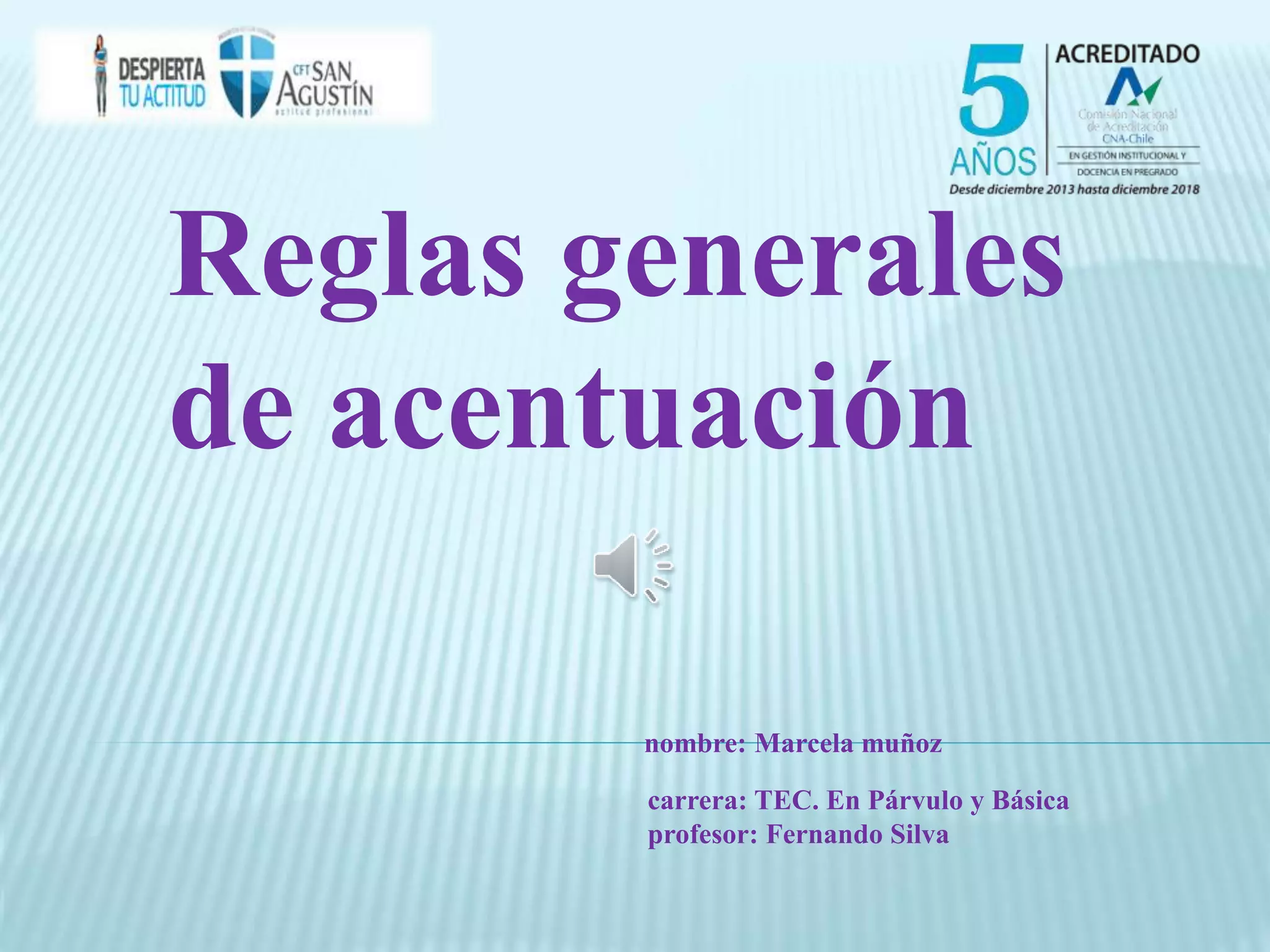 Este documento presenta las reglas generales de acentuación en español, indicando que las palabras agudas se acentúan si terminan en vocal, n o s, mientras que las palabras graves se acentúan si terminan en cualquier consonante excepto n o s. También señala que las palabras esdrújulas y sobreesdrújulas siempre llevan acento.