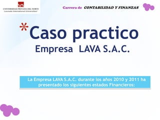 El documento presenta los estados financieros de 2010, 2011 y 2012 de la empresa LAVA S.A.C. Se detectaron errores en los estados financieros de 2010 y 2011. Se elaboraron hojas de trabajo y asientos contables para corregir los errores y reestructurar los estados financieros de 2010-2011. Los estados financieros corregidos muestran los ajustes realizados.