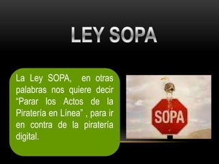 La ley SOPA y la ley PIPA buscan combatir la piratería digital bloqueando sitios web que intercambian música, películas, videos y otros contenidos protegidos por derechos de autor sin orden judicial. Sin embargo, estas leyes también amenazan la libertad de expresión en Internet y permitirían que el gobierno espíe las comunicaciones de los usuarios para hacer cumplir las leyes de derechos de autor. A pesar de que Megaupload era un importante sitio de intercambio de archivos, su cierre ha causado temor entre otros