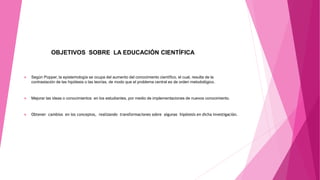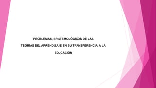 Este documento discute los problemas epistemológicos de las teorías del aprendizaje y su transferencia a la educación. Señala que mejorar los conocimientos de los estudiantes requiere implementar nuevos conocimientos y lograr cambios conceptuales a través de la transformación de hipótesis. También analiza las dificultades de las teorías de reconstrucción conceptual como la paradoja del aprendizaje y los problemas en definir claramente la relación entre aprendizaje y desarrollo en la teoría psicogenética de Vygotsky. Con