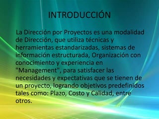 Este documento describe la gestión integrada de proyectos y su aplicación al comercio electrónico. Define la gestión integrada de proyectos como un proceso que optimiza los recursos para lograr los objetivos de un proyecto de manera eficiente y eficaz. Explica que el comercio electrónico requiere de una herramienta flexible como la gestión integrada de proyectos debido a su naturaleza cambiante y compleja.