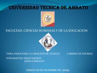 Este documento describe los pasos para crear un blog en Gmail. Explica que un blog es un sitio web actualizado periódicamente que recopila artículos de uno o más autores de forma cronológica. Luego, detalla tres pasos para crear un blog en Gmail: dar clic en la opción de crear un blog, ingresar el nombre y contraseña de la página, y presionar "acceder".