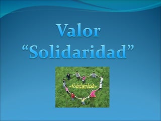 El documento enfatiza la importancia de la solidaridad y la unión entre las personas. Indica que todos vinimos a este mundo como hermanos y debemos caminar dándonos la mano y apoyándonos mutuamente. También señala que la solidaridad implica esforzarse por el bienestar de todos y que la unión nos fortalece mientras que la desunión nos debilita.
