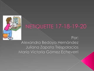 El documento recomienda usar emoticones para clarificar la intención de un mensaje y solo usar mayúsculas cuando sea gramaticalmente correcto, ya que su uso constante se interpretará como un grito y dificultará la lectura del mensaje. También sugiere redactar mensajes siguiendo las reglas gramaticales independientemente de si son formales o informales.