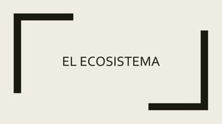 Un ecosistema es un conjunto de organismos que interactúan entre sí y con su ambiente abiótico. Las especies de un ecosistema dependen unas de otras y sus interacciones dan lugar al flujo de energía y materia. Un ecosistema incluye elementos bióticos como plantas, animales y bacterias, así como elementos abióticos como el clima y el relieve. La diversidad dentro de un ecosistema y entre ecosistemas aporta información sobre la cantidad y cambio de especies en una región.