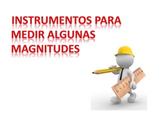 Este documento describe varios instrumentos de medición. Brevemente describe qué es la metrología y sus aplicaciones en diferentes campos. Luego, explica qué son la temperatura y diferentes instrumentos para medirla como termómetros, pirómetros y termopares, detallando sus usos. Finalmente, presenta información sobre longitud, ángulo, masa y presión, incluyendo ejemplos de instrumentos como cinta métrica, transportador y balanza.