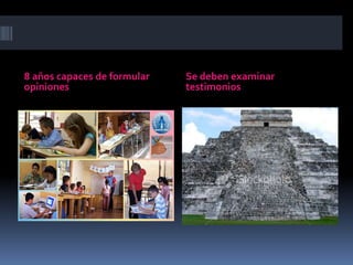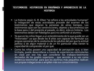 1) La importancia de examinar testimonios históricos para que los estudiantes desarrollen habilidades de indagación.