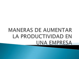 La productividad se define como la relación entre el trabajo realizado y las horas trabajadas, e incluye la importancia de establecer objetivos claros y estudiar las debilidades de la empresa. Es fundamental organizar actividades, capacitar a los empleados y fomentar su compromiso con el cambio para mejorar la eficiencia. Además, el trabajo debe ser visto como un medio de perfeccionamiento personal, impactando directamente en el desempeño empresarial.