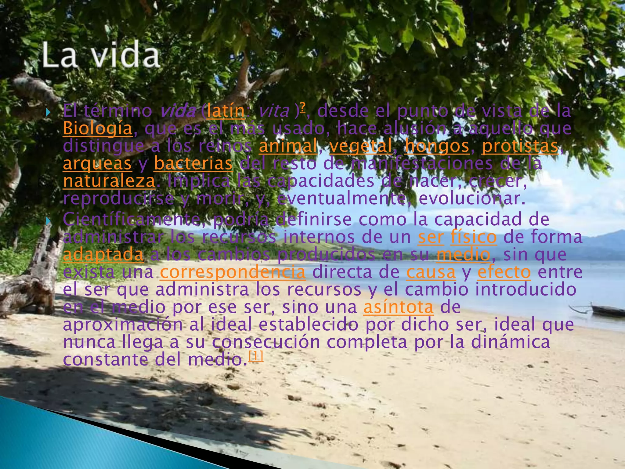 Este documento define la vida biológicamente como la capacidad de nacer, crecer, reproducirse y morir que distinguen a los reinos biológicos del resto de la naturaleza, e implica la habilidad de adaptarse a los cambios ambientales sin una relación directa de causa-efecto. También señala que la vida se desarrolla a través de la investigación de estrategias para mejorar la participación en educación física de estudiantes a través de la música.
