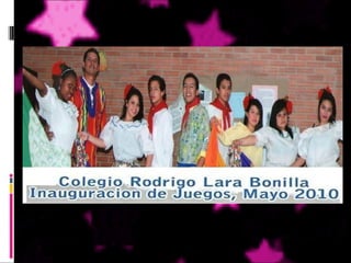 Este documento presenta una reseña histórica de la Institución Educativa Distrital Rodrigo Lara Bonilla desde 1982 hasta 2008. Detalla cómo y cuándo fue creada y los cambios de nombre que ha tenido a lo largo de los años. Además, describe las diferentes áreas y proyectos del colegio como el restaurante, los salones, el coliseo, los grupos de danza, porras y la banda marcial.