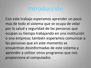 OHSAS 18001 es una norma internacional que establece requisitos para los sistemas de gestión de seguridad y salud en el trabajo. La norma ayuda a las organizaciones a controlar riesgos laborales y mejorar el desempeño en seguridad y salud. Algunos beneficios incluyen fomentar una cultura preventiva, identificar y controlar riesgos de cada puesto de trabajo, condiciones de trabajo más seguras que aumentan la productividad, y mejorar la reputación de la organización en gestión de seguridad y salud.