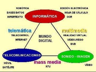 Las Tecnologías de la Información y la Comunicación (TIC) se definen como los instrumentos y procesos utilizados para recuperar, almacenar, organizar, manejar, producir, presentar e intercambiar información de forma electrónica y automática. Las TIC incluyen equipos como computadoras, teléfonos, y programas como bases de datos. Permiten modificar ámbitos como el trabajo, el estudio y las compras, y generar mayor conocimiento e inteligencia. Son importantes en la educación para alfabetizar digitalmente a los estudiant