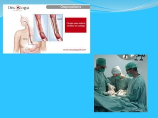 El documento aborda la cirugía, incluyendo tipos, anestesia y cuidados de enfermería pre, trans y postoperatorios. Se clasifican las cirugías según su objetivo, necesidad, modalidad y características del tejido, y se explican los diversos tipos de anestesia y sus efectos. También se destaca la importancia de la atención preoperatoria y la evaluación rigurosa del paciente para minimizar riesgos y asegurar una recuperación exitosa.