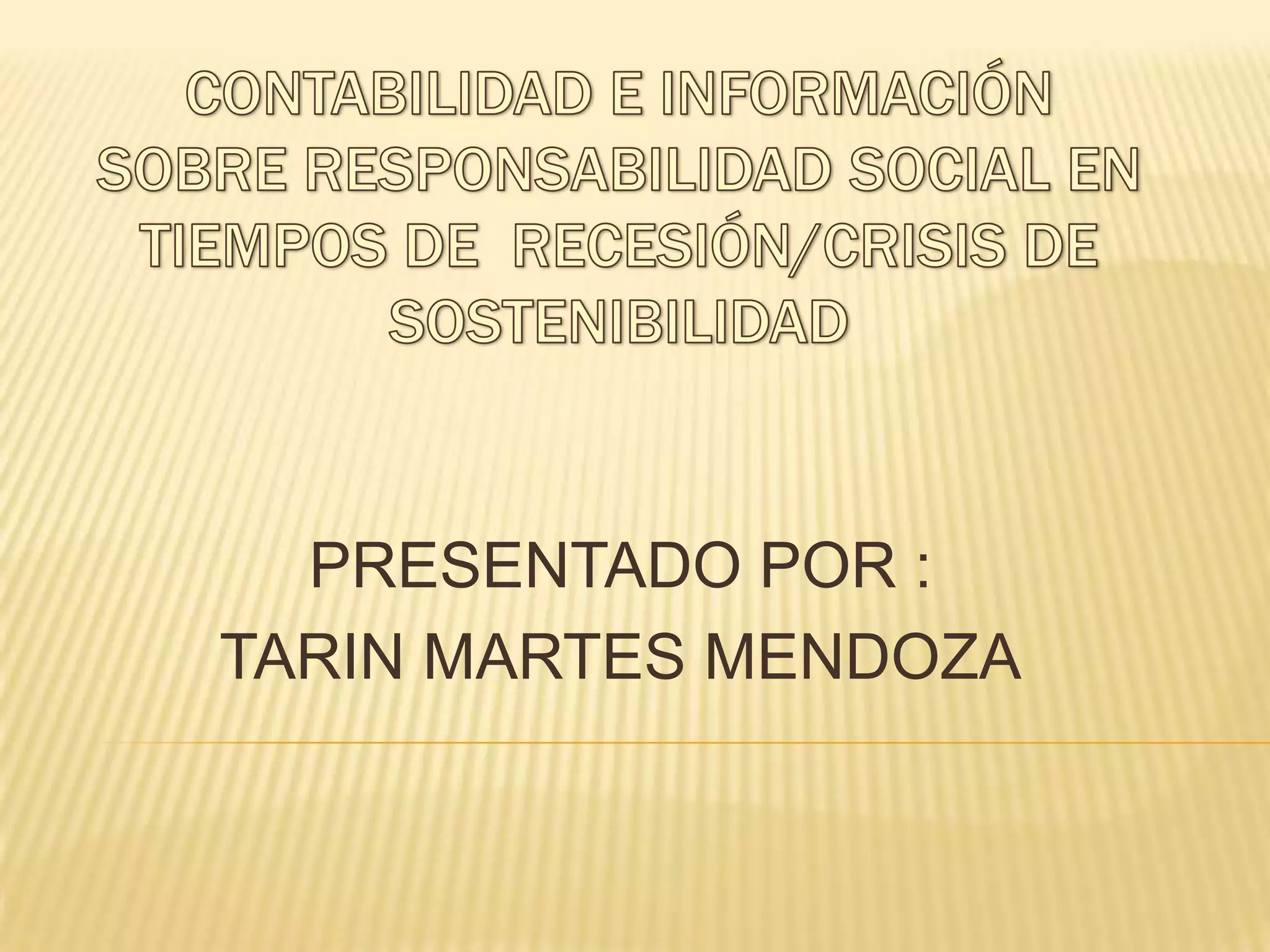 El documento discute el papel de la contabilidad social y ambiental durante tiempos de crisis de sostenibilidad. Aborda varios temas como la educación para fomentar cambios de actitudes, el papel del tercer sector en la divulgación de información de sostenibilidad, y las oportunidades de las energías renovables durante la recesión. Los autores exploran formas de mejorar la transparencia y rendición de cuentas, y sugieren que enfocarse en valores humanos puede superar los catalizadores de la crisis de sostenibilidad.