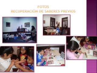 Este documento presenta una lección de 120 minutos sobre el Retablo Ayacuchano para estudiantes de primaria. La lección busca que los estudiantes identifiquen la función de las representaciones en el Retablo como registro de costumbres y su importancia patrimonial. La secuencia didáctica incluye una explicación sobre el Retablo, identificación de sus elementos visuales y la creación de un Retablo propio por los estudiantes aplicando los nuevos conocimientos.