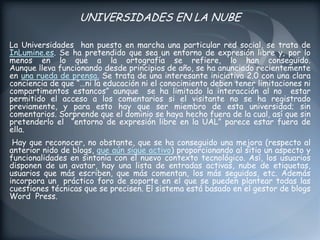 El documento habla sobre el uso de la computación en la nube y las redes sociales en la educación superior. Específicamente, propone ideas como crear grupos en Facebook para comunicarse con estudiantes sobre tareas, usar Twitter para implementar dinámicas de aprendizaje, crear blogs y canales de YouTube para que los estudiantes publiquen trabajos, y utilizar Flickr para que los estudiantes compartan fotografías como parte de proyectos de curso. El objetivo es aprovechar las herramientas digitales para enseñar de manera más interactiva a la