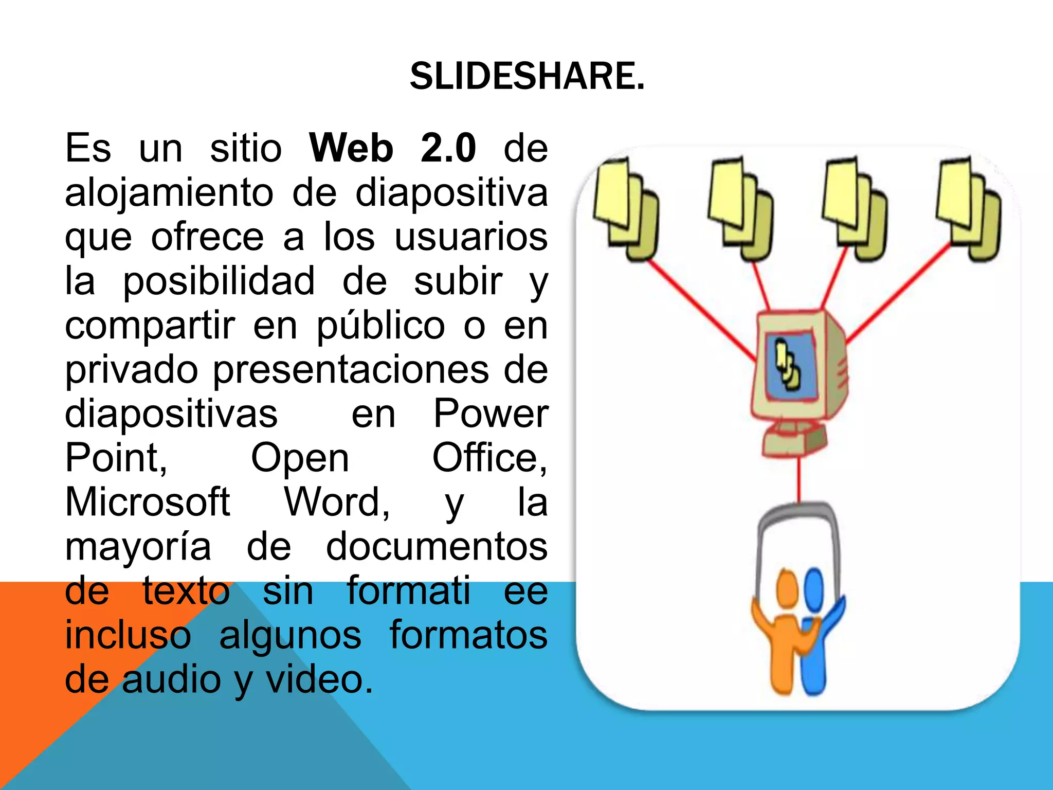 Slideshare es una plataforma web que permite a los usuarios subir y compartir presentaciones en diferentes formatos. Para registrarse, se debe crear una cuenta proporcionando un nombre de usuario y correo electrónico. Una vez creada la cuenta, los usuarios pueden subir sus presentaciones, editarlas y compartir el código en sus blogs.