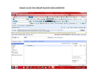 Google Docs se puede acceder desde Gmail haciendo clic en Docs. Una vez dentro se puede crear un nuevo documento o cargar uno existente seleccionándolo desde la computadora. El documento cargado puede publicarse en la web haciendo clic en "Publicar en web" para compartirlo.