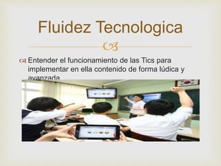 El documento describe tres objetivos relacionados con el uso de las TIC. El primer objetivo es entender el funcionamiento de las TIC para implementar contenido de forma lúdica y avanzada. El segundo objetivo es evaluar la información de Internet de manera responsable y autónoma, por ejemplo visitando portales educativos. El tercer objetivo es utilizar al máximo las TIC en la vida laboral y personal para resolver problemas de diferentes tipos.