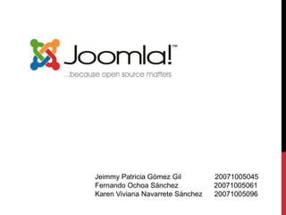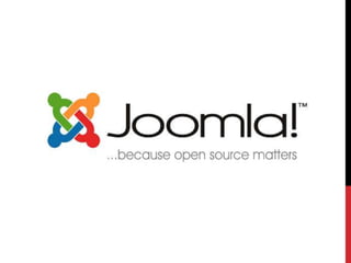 Este documento describe un sistema de gestión de contenidos (CMS) de código abierto llamado Joomla. Joomla es un potente y versátil CMS que permite a cualquier persona construir sitios web y aplicaciones en línea. El documento explica cómo instalar Joomla, sus características principales como la gestión de usuarios, contenidos, categorías y artículos, y las diferentes extensiones disponibles.