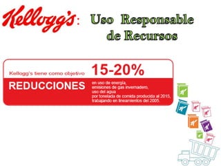 Este documento resume el proceso de producción de hojuelas de maíz Kellogg's en Venezuela. La planta produce 80 cajas por minuto y un total de 6.9 millones de cajas diarias. Describe las etapas del proceso que incluyen la recepción de la materia prima, cocción, trituración, secado, tostado y empaquetado. También discute el balance de masa a través del proceso y los esfuerzos de la empresa para operar de manera responsable con el medio ambiente y la sociedad.