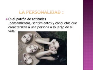 El documento describe las personalidades de varias niñas. Cada niña se caracteriza por una combinación de rasgos como ser cariñosa, tímida, sociable, inteligente, responsable, colaboradora, alegre, seria, entre otros. El documento proporciona una lista de rasgos de personalidad para cada niña descrita.